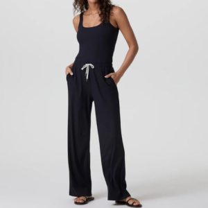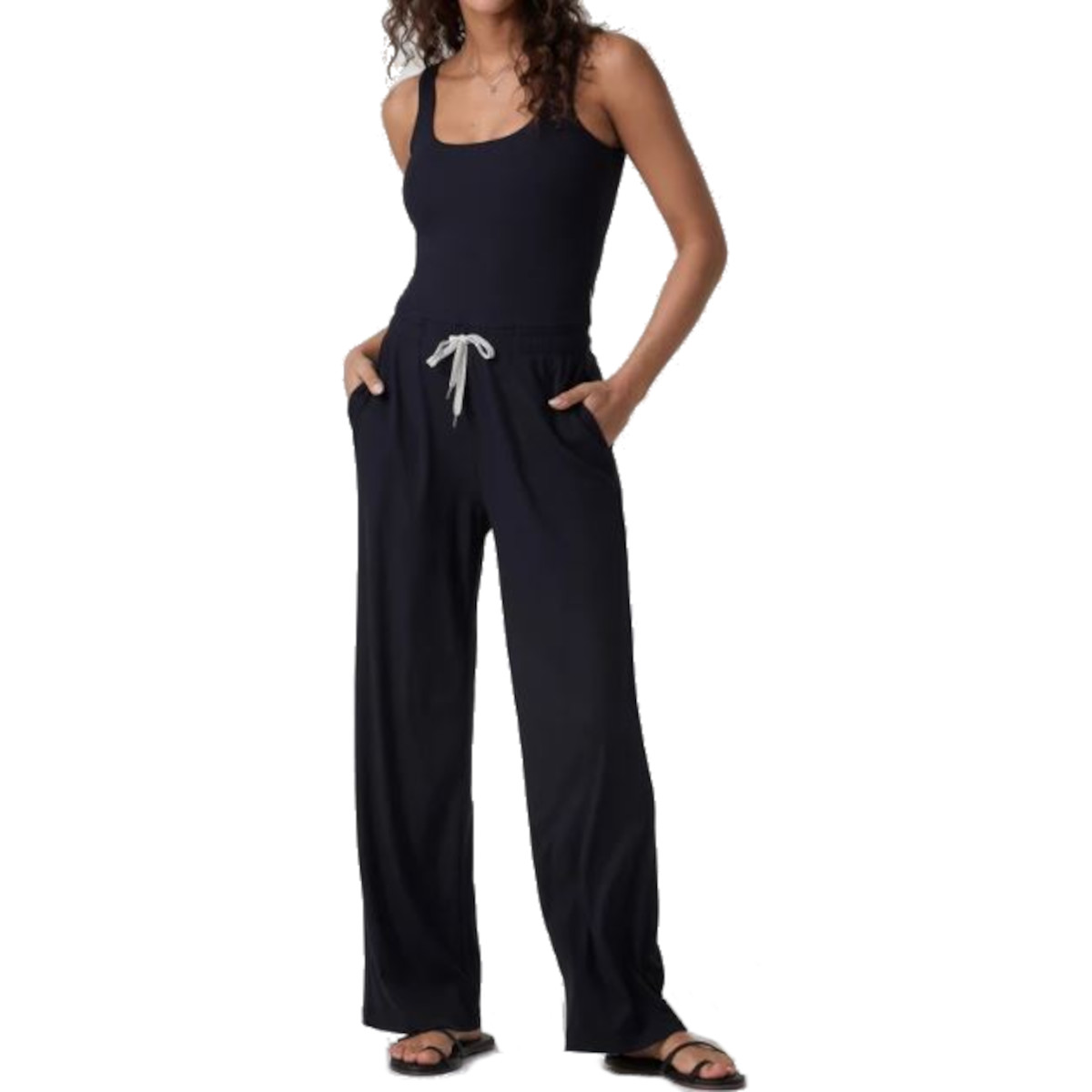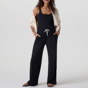 The Women's Vuori Pose Scoop Jumpsuit is all about elegant comfort and effortless styling. Made with an innovative stretch rib knit, this sleeveless jumpsuit features a scoop neckline, built-in bra with pads, and classic straight leg.