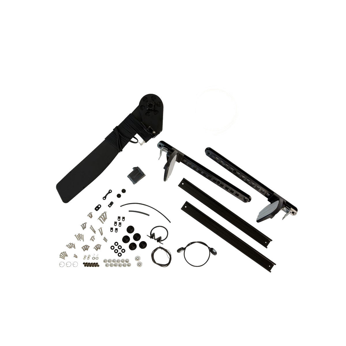 This near-universal rudder kit services many current and older Wilderness Systems solo kayaks. The kit includes footbraces, solo size rudder assembly, cables, tubes, and hardware to fit both rudder-ready and non-rudder ready kayaks.