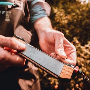 The Guided Field Sharpener is a complete sharpening solution for field, home or shop use. Designed exclusively for sportsmen and knife users who need a complete, robust and compact manual sharpening solution. It incorporates 5 stages of sharpening and honing, each with built in angle guides for a consistent bevel across the entire blade. 20°guides, 320 & 600 grit diamond, fine ceramic rod, and a leather strop combine to provide one solution from repair to creating a high polished sharp edge. The Guided Field Sharpener also sharpens serrations and fish hooks and the removeable diamond plates reveal a storage cavity and broadhead wrench inside.