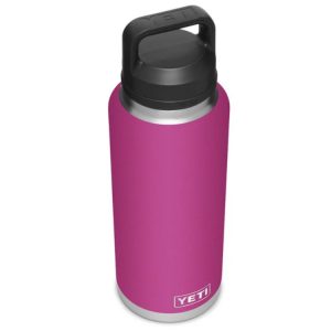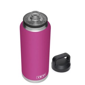 The Yeti Rambler 46 oz Bottle with Chug Cap is designed for a life in the wild. Scorching days on the ranch and keeping you hydrated through rugged terrain are this bottle’s calling, second only to keeping your drinks icy cold (or perfectly hot). For easy cleaning and use day after day, this reusable bottle is dishwasher safe. With a quick twist, the TripleHaul™ handle comes off, exposing our shatter-resistant, dishwasher safe spout that allows for controlled gulps on the go. When it’s time for a wash or refill, remove the entire cap to expose the bottle’s wide mouth.